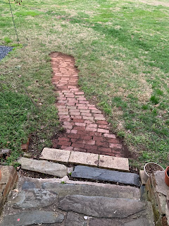 Amy was doing a little gardening and uncovered an old brick walkway heading north from our side porch!